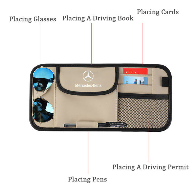 🚗 Safe And Pleasant Driving: The sunshade storage box provides additional storage space for your car, making it easy to place small items. Keep the car clean and orderly, allowing drivers to drive more comfortably and attentively. A gift for the driver.