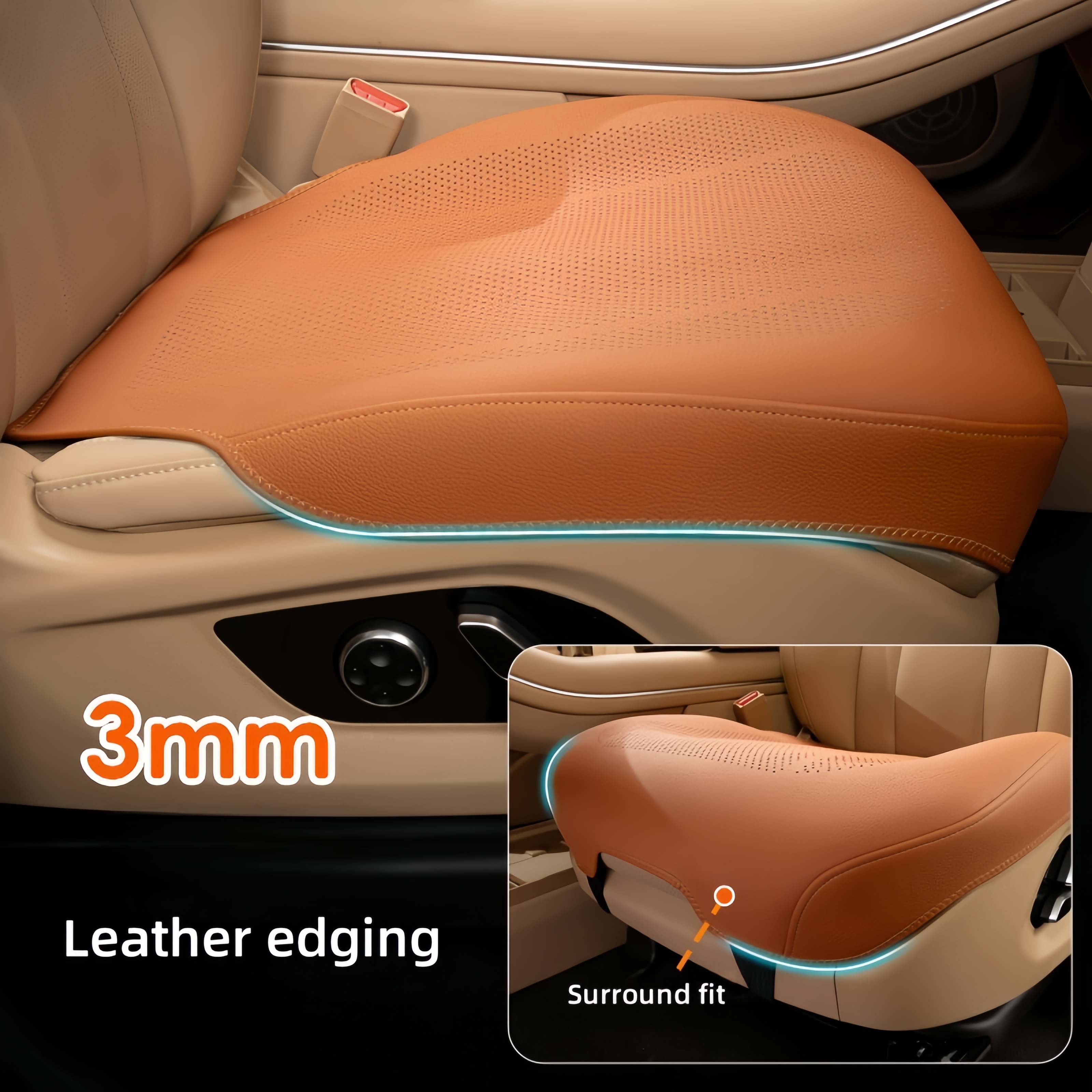 【Easy to Install】: These full leather car cushions are easy to install, Hook the front of the seat cushion under the seat using the front hooks, then use the fixing chucks to pass through the center seam of the seat and then tighten the fixing with an elastic band.When installed correctly, it will be very securely fastened to the original seat and won't slide around easily, so you can use it for extended periods of time with confidence.