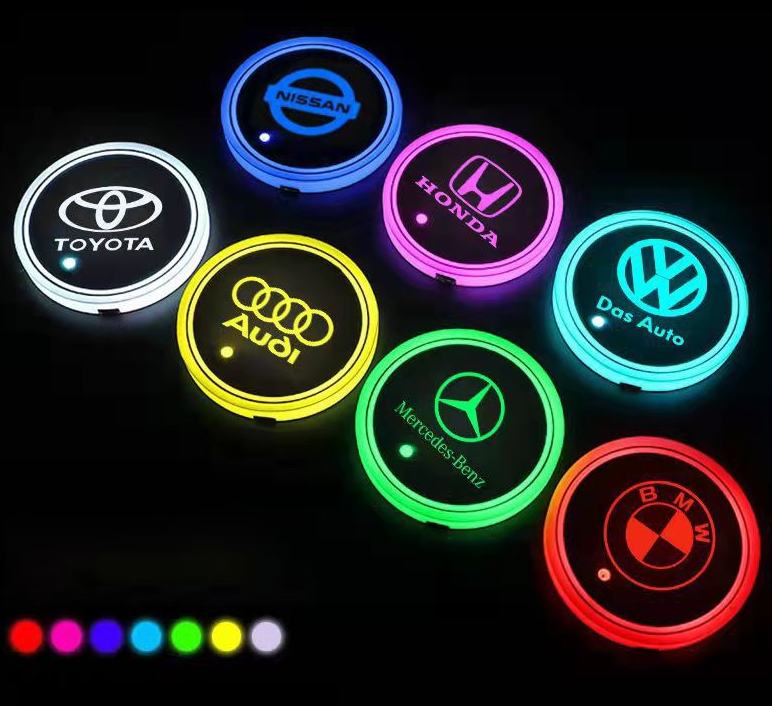 7 COLOR SWITCH:This LED car coaster has 7 colors (white, blue, red, green, yellow, purple, ice blue), there is a button on the back of the cup holder, press the button to turn on/off or switch colors.