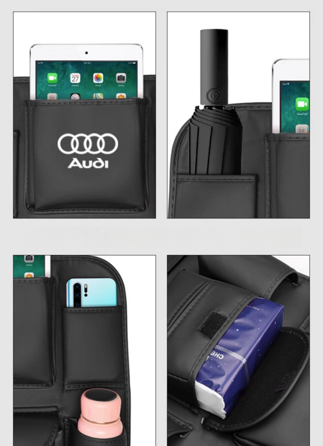 Our high-quality car storage bags are made of high-quality leather material, which is sturdy and durable. Not only does it protect your entire seat from scratch damage; it also protects your entire seat from water damage. And it's also very easy to clean. Just wipe and go!