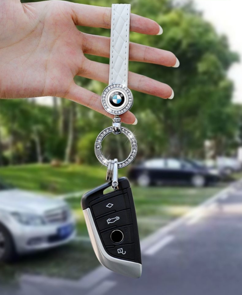 The keychain is made of high-quality zinc alloy and inlaid with luxurious rhinestones, making it light, luxurious, elegant, flexible and durable. It is comfortable to touch, waterproof and sweat-proof, does not fade, does not fall off, and has no odor. With an interesting pendant, it is fashionable and versatile and can be used in all cars.