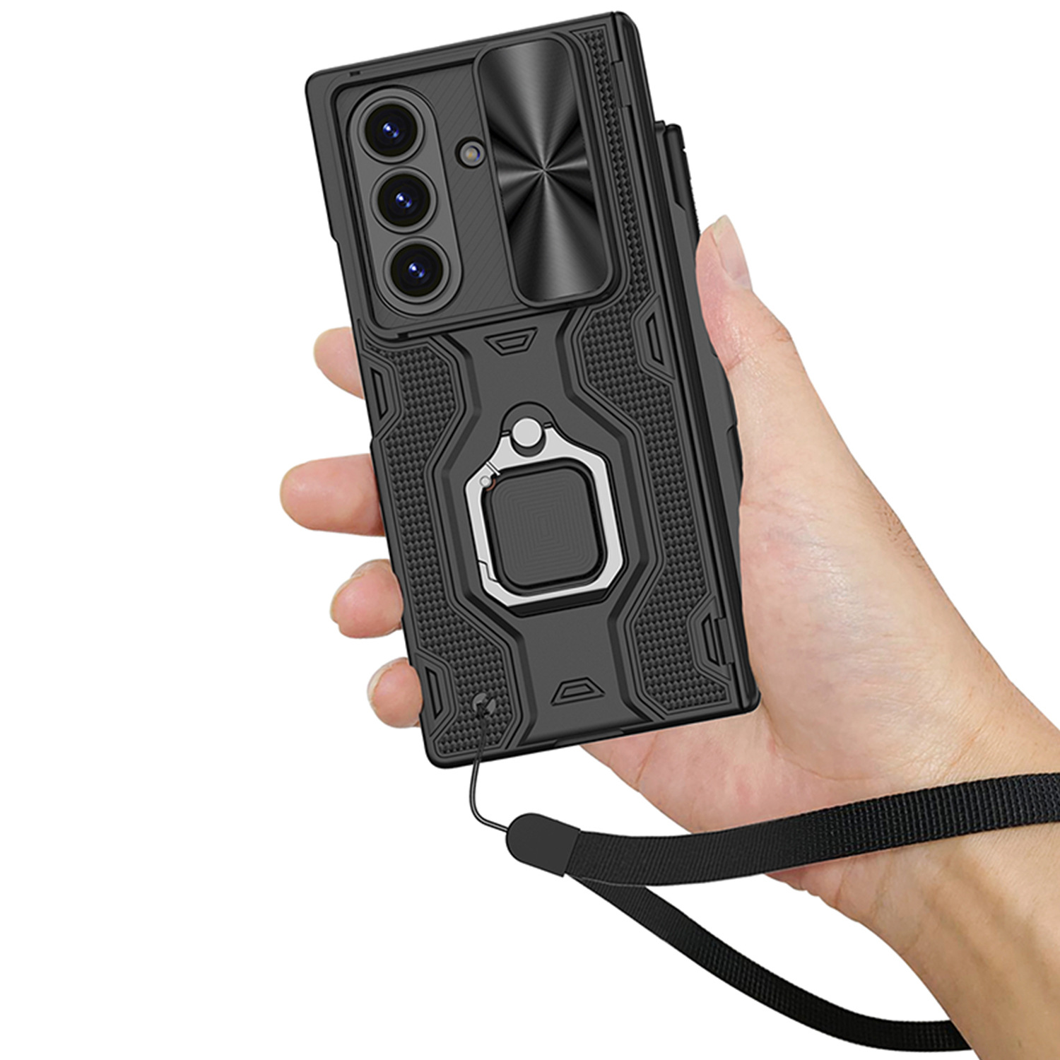 Suitable For Samsung Zfold7 Mobile Phone Case Sleeve Push Window Lens Ring Bracket Pen Slot Protective Cover Diamond Magnetic Adsorption Pen