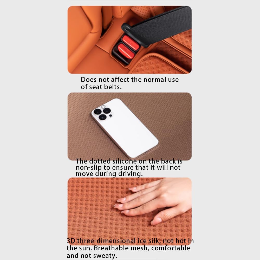 【Design】The front and rear brims of the seat cushion are designed with storage pockets for easy use. The back is made of environmentally friendly non-slip silicone base cloth to prevent the seat cushion from moving. The rear seat cushion seat belt slot is reserved to increase driving safety.