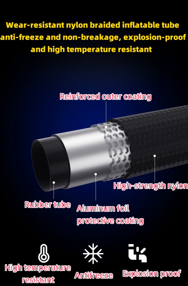 Wear-resistant nylon braided inflatable tube, anti-freeze, non-breakage, explosion-proof and high temperature resistant.