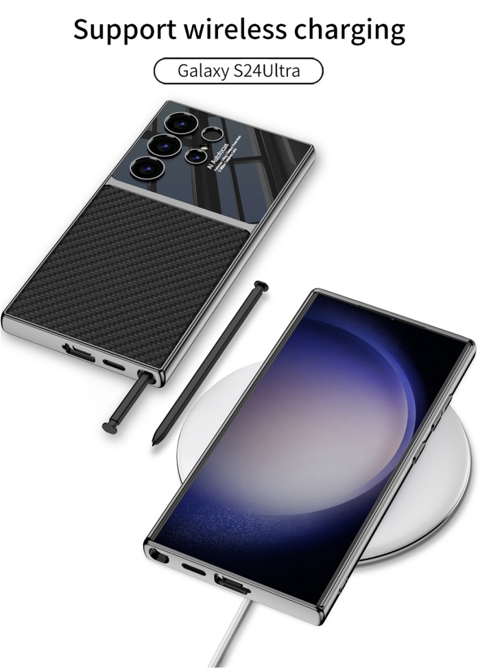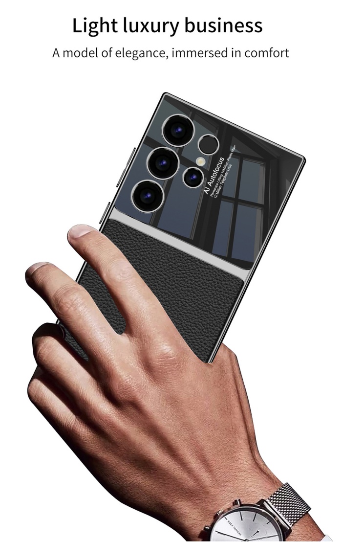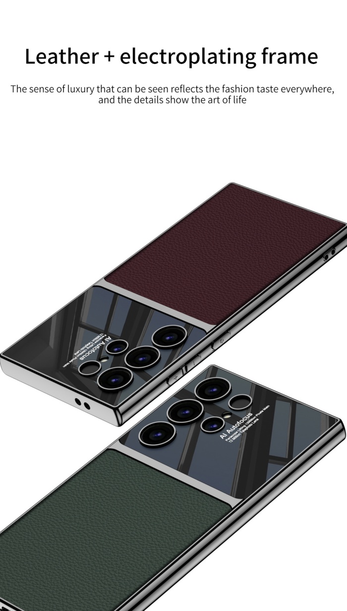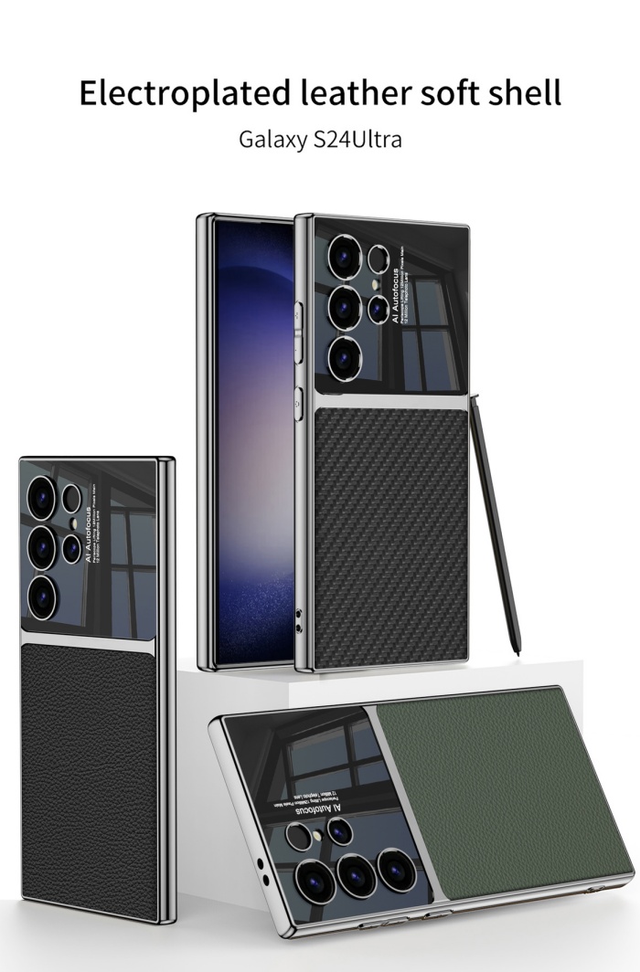 Samsung S24 mobile phone case S24u leather case S24ultra electroplated plain leather mobile phone