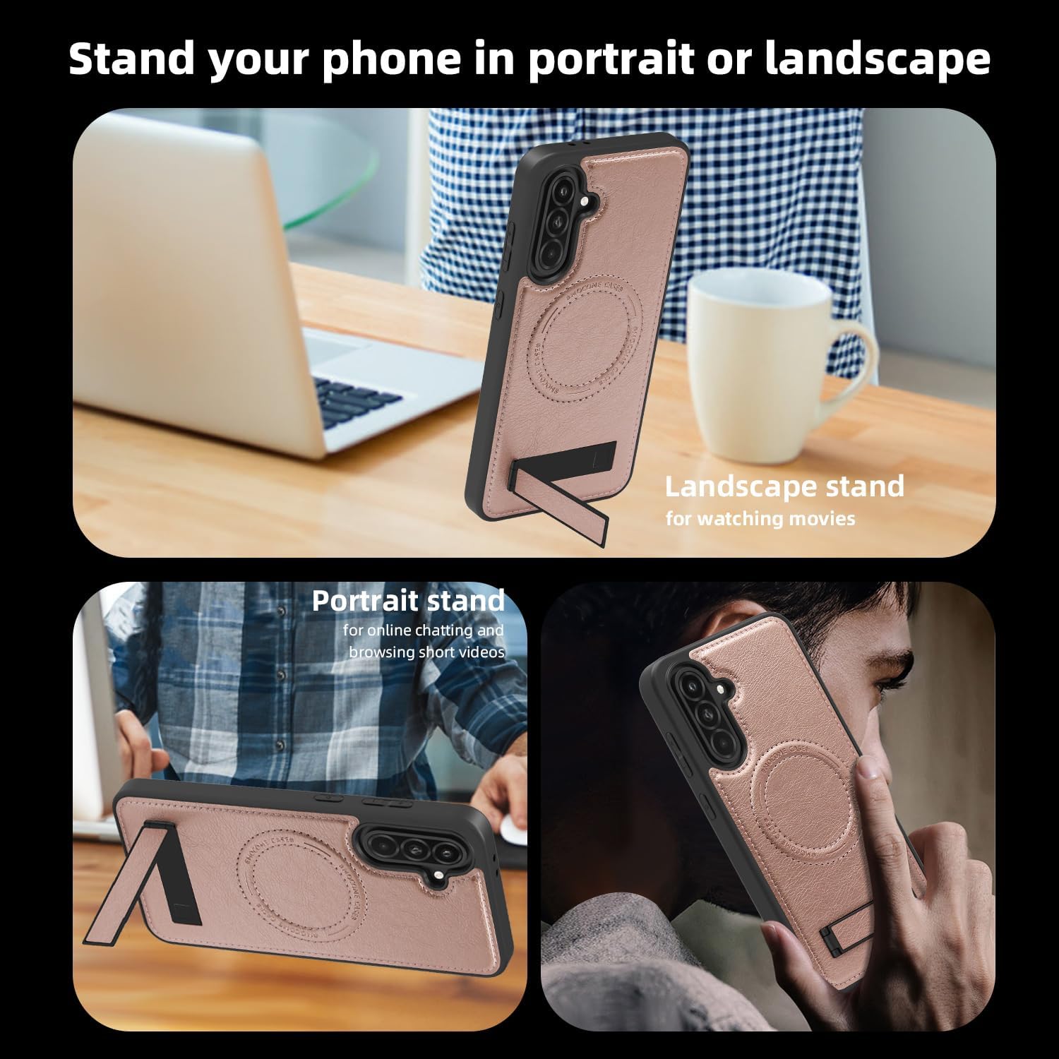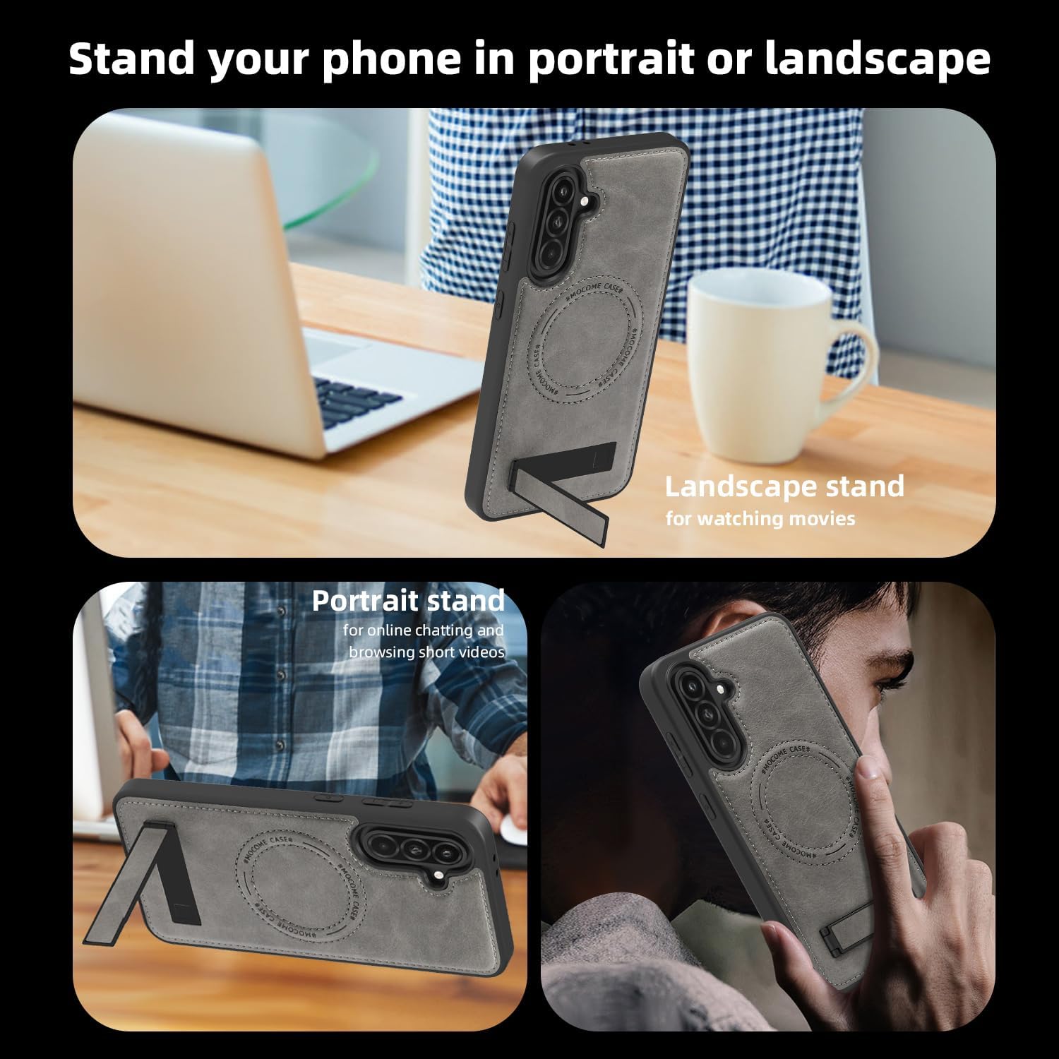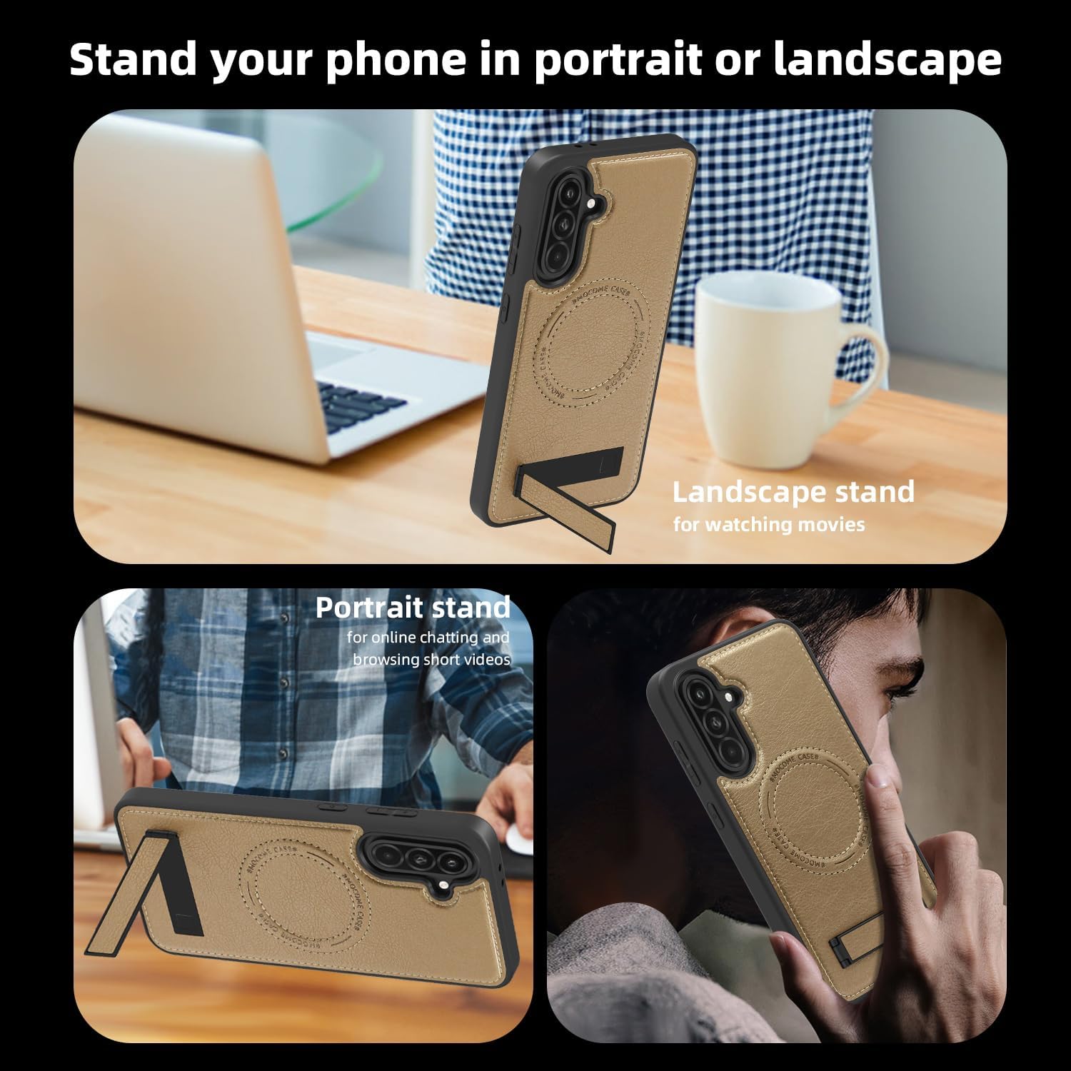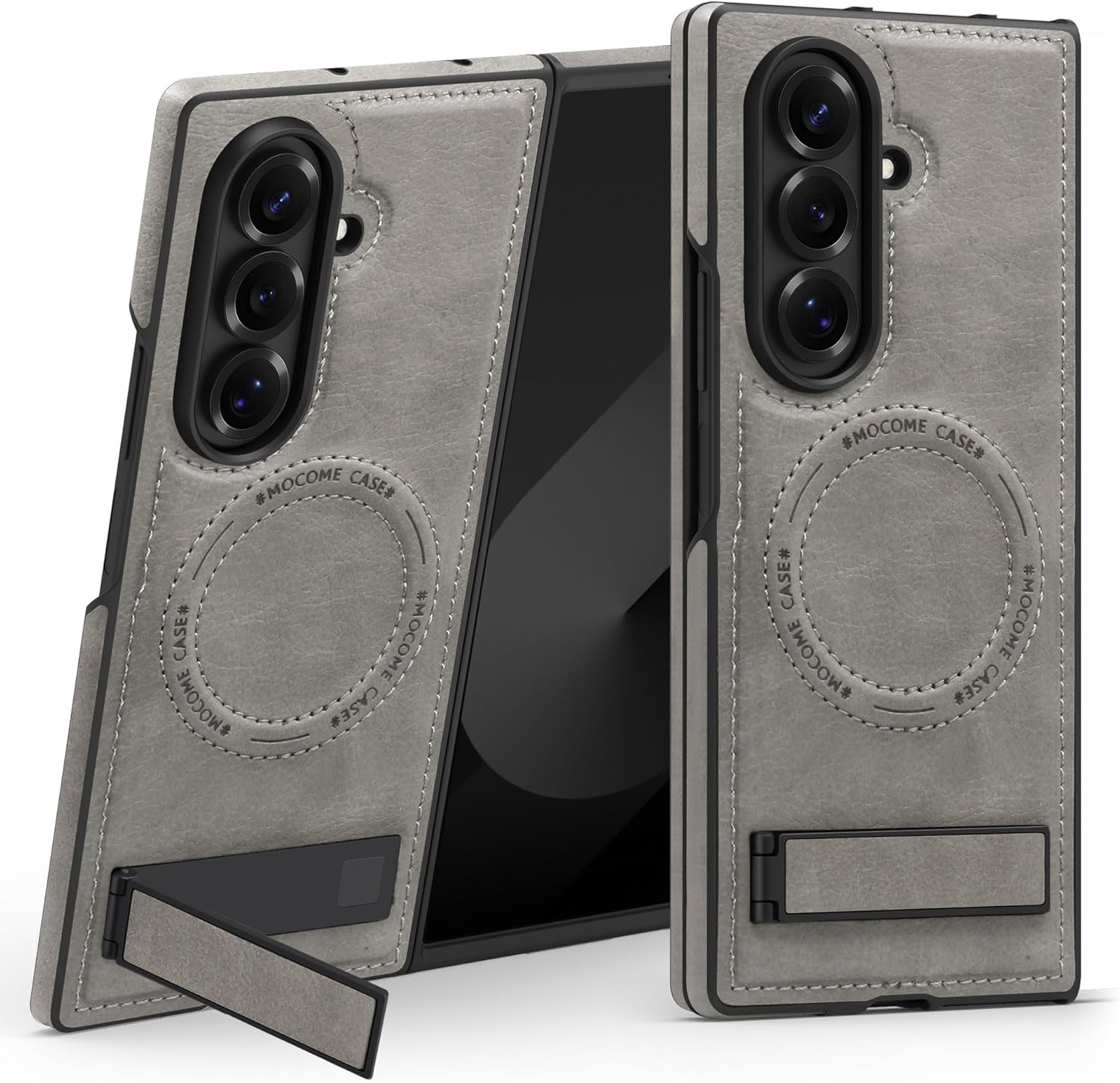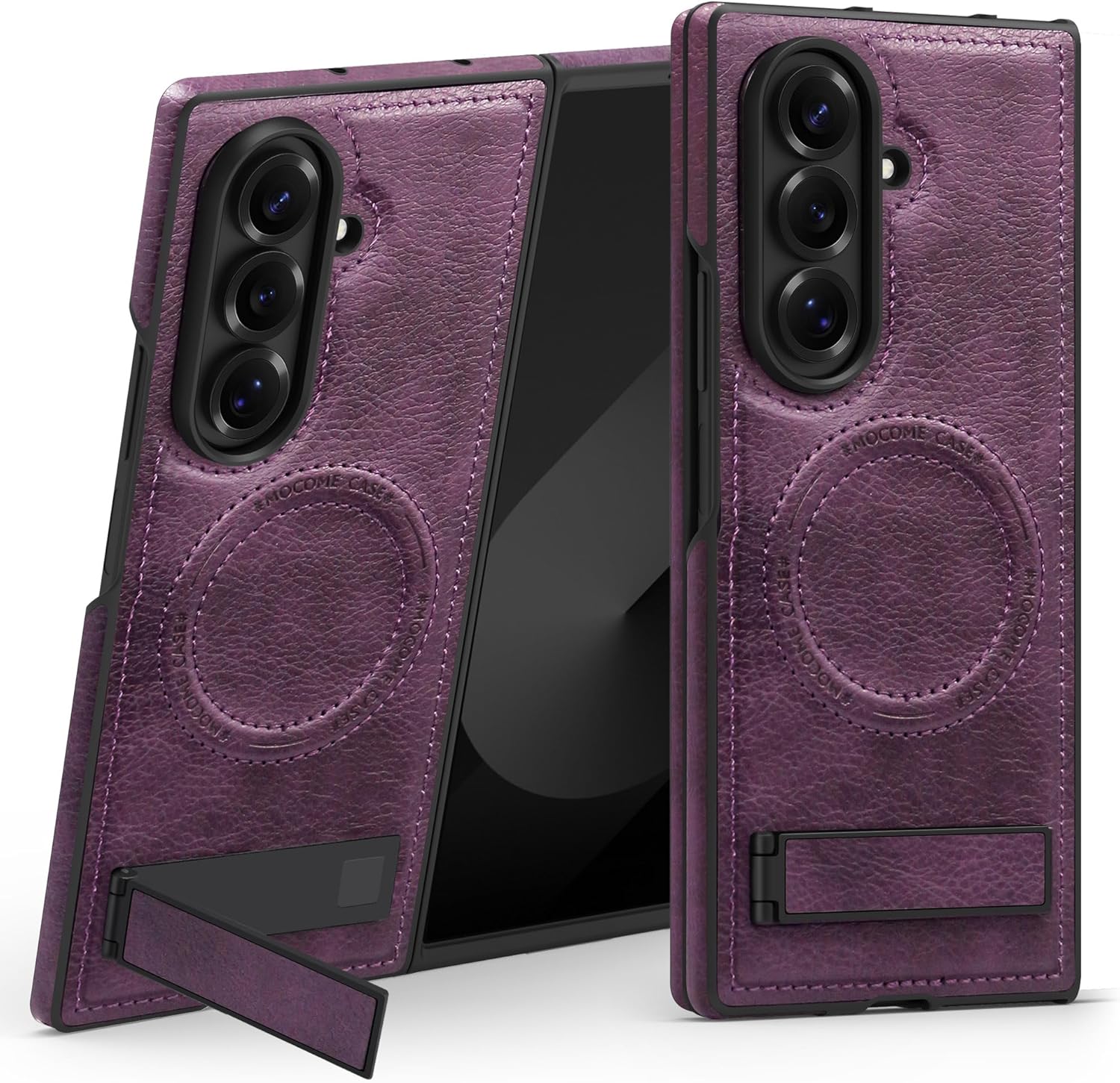Lunivop for Samsung Z Fold 7 Case 2025 Leather Back Cover Kickstand Soft Bumper